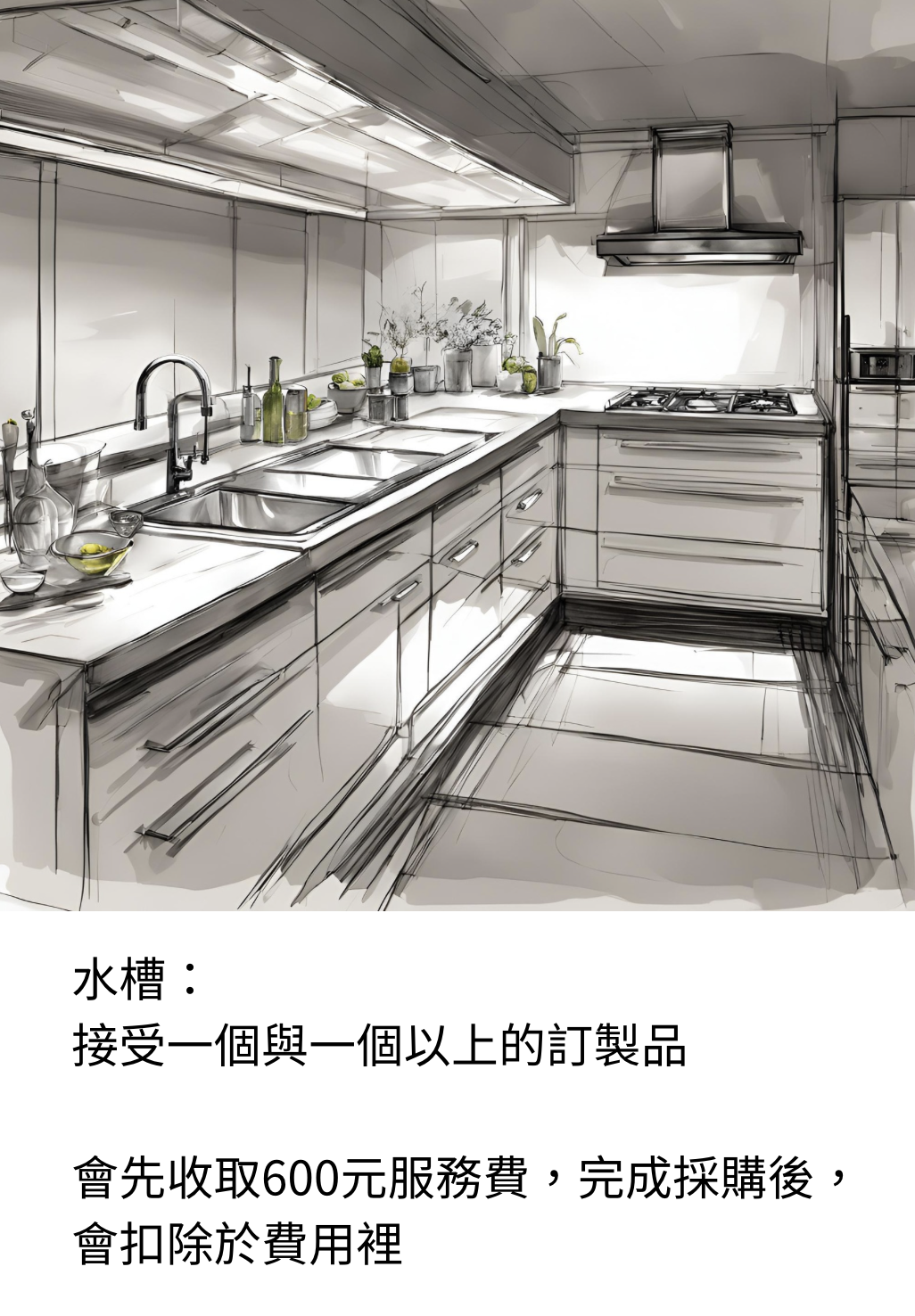 此外,訂製水槽還可以選擇不同的材質、顏色和設計,以搭配整體廚房的風格和功能需求。